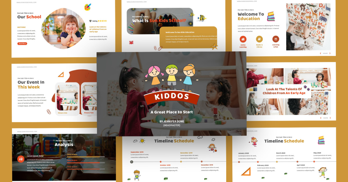 儿童幼儿园学校 PowerPoint 模板 平坦、干净、极简、优雅和灵活的演示模板。