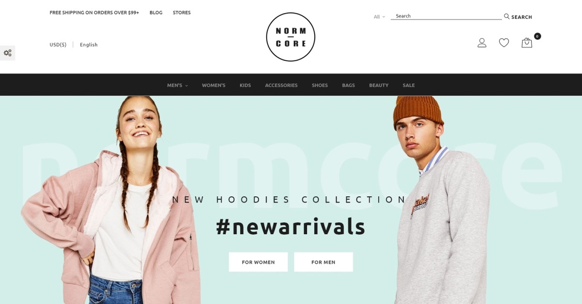 如果您想创建一家以朴实无华、外观普通的服装为特色的在线商店,那么 PrestaShop 的简约而干净的 Normcore 主题是一个很好的解决方案。立即尝试此模板,让您的商店变得更加出色。点击现场演示!