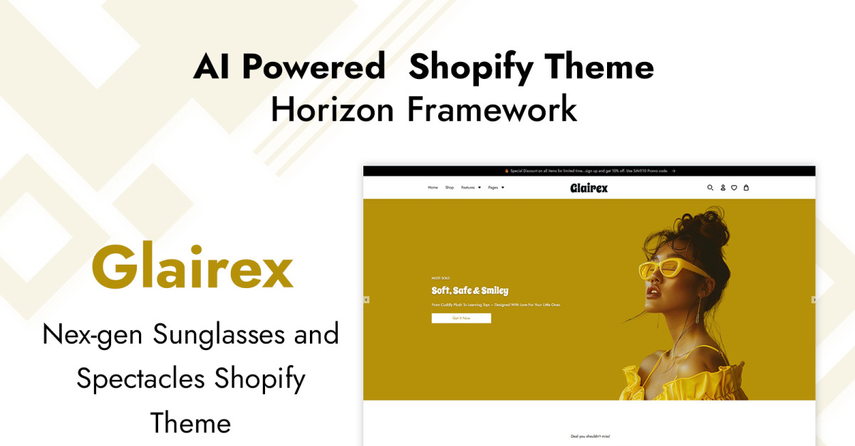 Glairex – 新一代太阳镜和眼镜 Shopify 主题 - AI 驱动的 Horizon 框架
