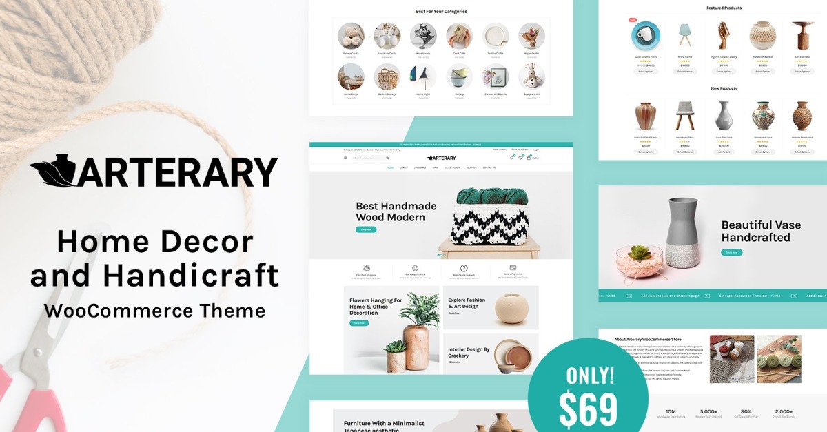 Arterary - 家居装饰、手工艺品、陶瓷艺术家和家禽养殖场 WooCommerce 主题