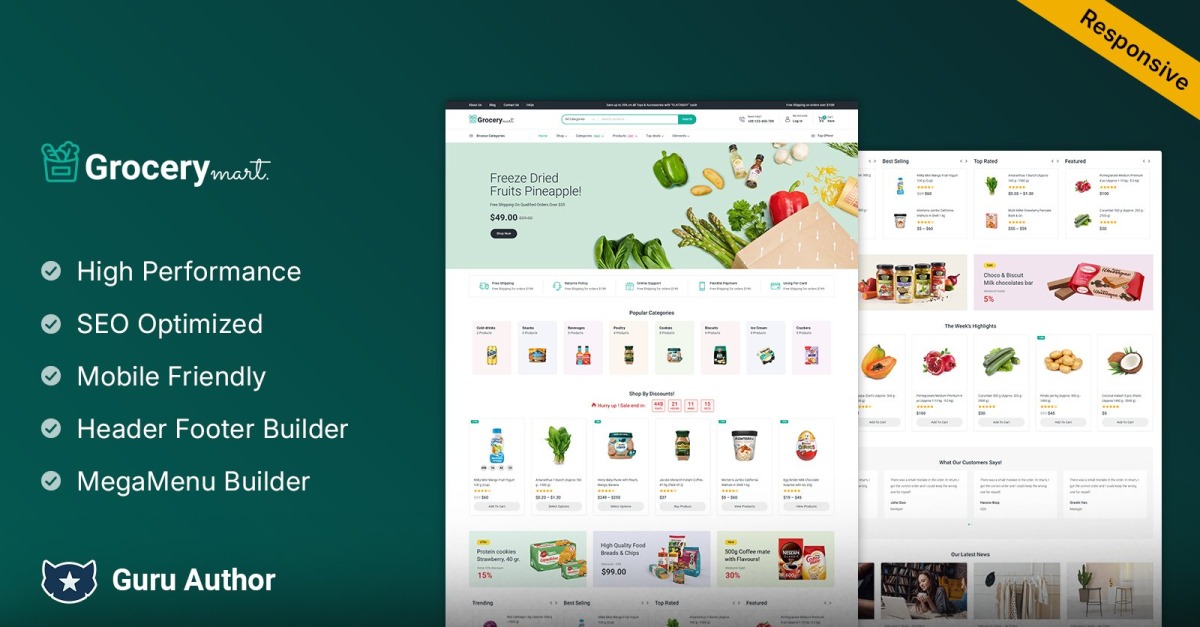 Grocery Mart – obchod se zeleninou a bio Elementor WooCommerce Store