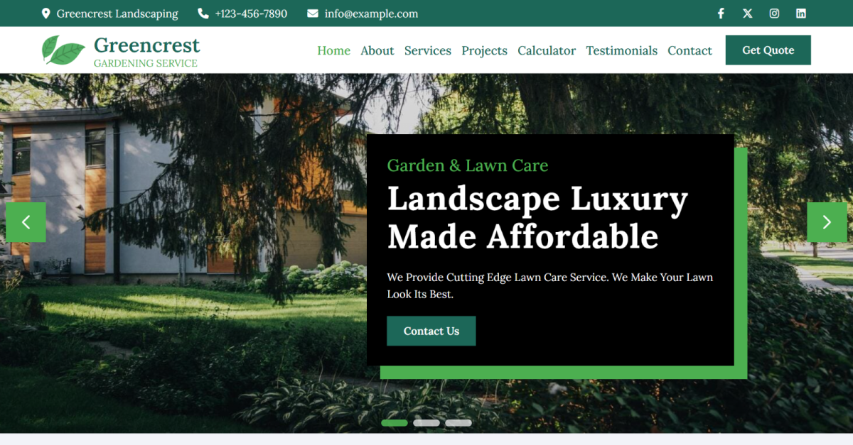 Greencrest wurde mit einem Mobile-First-Ansatz entwickelt und gewährleistet ein nahtloses Erlebnis auf Desktops, Tablets und Smartphones . Es ist für alle gängigen Browser optimiert, sodass Ihre Garten- und Landschaftsbau-Website überall frisch aussieht und einwandfrei funktioniert.