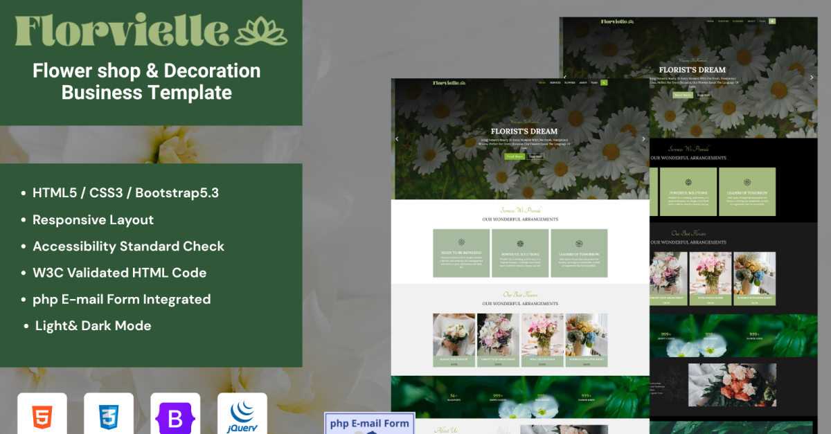Florvielle ist mehr als nur eine Vorlage – es ist ein digitaler Blumenstrauß , der Eleganz und Emotionen vereint. Jeder Bereich ist sorgfältig gestaltet, damit Sie Ihre florale Kreativität ausleben, Besucher begeistern und Ihr Unternehmen ausbauen können. Ob romantische Rosenkollektion oder festliche Blumenarrangements – mit Florvielle erblühen Ihre Kreationen online in voller Pracht . Gestalten Sie eine Website voller Charme – mit Florvielle.