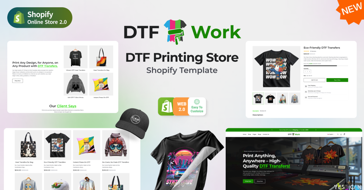 Das DTF Printing Shopify 2.0 Theme ist eine vollständig optimierte, leistungsstarke E-Commerce-Lösung speziell für Druckereien. Das klare, moderne Design sorgt für ein ansprechendes Einkaufserlebnis, während erweiterte Funktionen wie anpassbare Produktseiten, ein nahtloser Checkout und mehrere Zahlungsgateways den Online-Verkauf mühelos machen. Mit integrierten SEO-Tools, mobiler Reaktionsfähigkeit und einfachen Anpassungsmöglichkeiten ermöglicht Ihnen dieses optimale Shopify-Theme für Druckereien die Erstellung eines professionellen Online-Shops ohne Programmierkenntnisse.