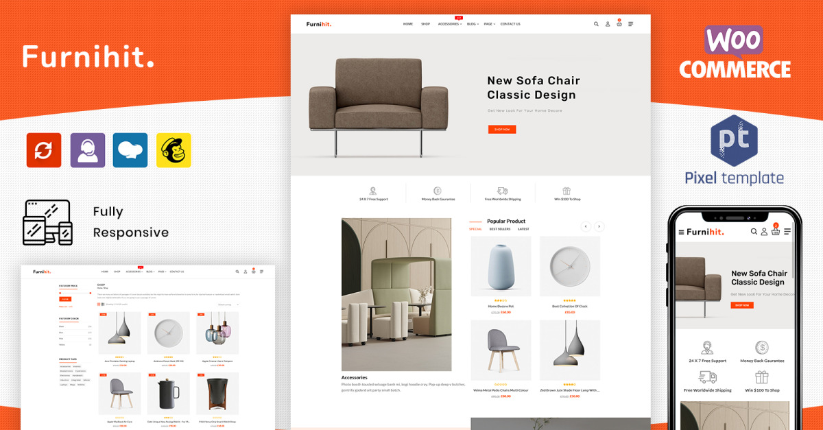 Das Furnihit-Theme eignet sich am besten für den Verkauf von Möbeln, Innenausstattungs- und Außenprodukten und vielem mehr. Das Theme ist darauf ausgelegt, komplette Produkte richtig anzuzeigen und Ihre Umsätze zu steigern. Jetzt können Sie Ihre Bestellung über das leistungsstarke WooCommerce-Dashboard verwalten. Das Theme ist komplett für Marketing eingerichtet und mit Schriftart und Text gestaltet, die Marketing- und Werbedesign ermöglichen. Das Theme hat tolle Funktionen wie einen Sa Revolutions-Schieberegler, WP Backery Page Builder, MailChimp und Kundenbewertungen. Sie können benutzerdefinierte Blöcke und hervorragende Produktbilder und vollständigen nützlichen Text erstellen und je nach Design anpassen. Das Theme ist in Google Web Font integriert und bietet Ihnen eine Vielzahl von Schriftarten zur Auswahl, um das Aussehen einer Website auf Desktops, Tablets oder Telefonen anzupassen und zu integrieren. Ein toller Look auf jeder Partner-Website und speziell für das Design von Produktseiten konzipiert. So können Sie tiefer einkaufen und für jedes Produkt mehrere Produkte und Attribute und komplette Variationen erstellen.