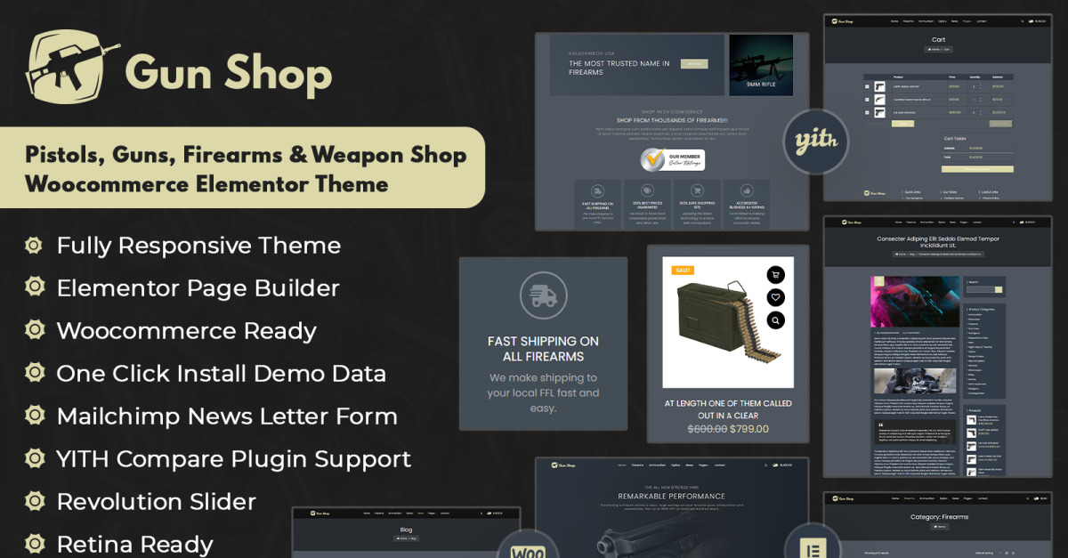 BulletCrew - Woocommerce Elementor Theme für Pistolen, Waffen, Schusswaffen und Waffenshops