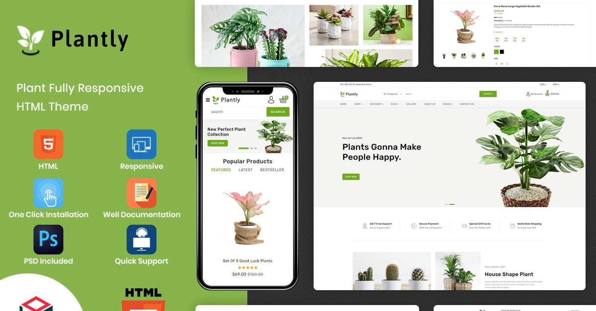 Plantly - Plantilla de sitio web de comercio electrónico HTML5 de Plants And Nursery
