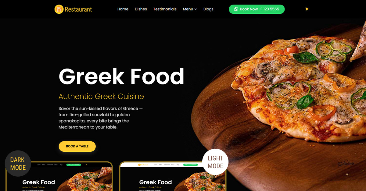 Nuestra plantilla web para restaurante griego es una solución con un diseño atractivo y totalmente responsiva, perfecta para mostrar la cocina tradicional griega y mejorar la presencia online de su restaurante. Con diseños elegantes, imágenes de alta calidad y código HTML5/CSS3 moderno, esta plantilla es ideal para tabernas, bistrós mediterráneos y restaurantes de alta cocina. Con secciones integradas para menús, reservas, testimonios y galerías de fotos, está optimizada para un rendimiento rápido, visibilidad SEO y compatibilidad con dispositivos móviles. Fácilmente personalizable, esta plantilla le ayuda a atraer a más comensales locales y turistas que buscan auténticas experiencias gastronómicas griegas online.
