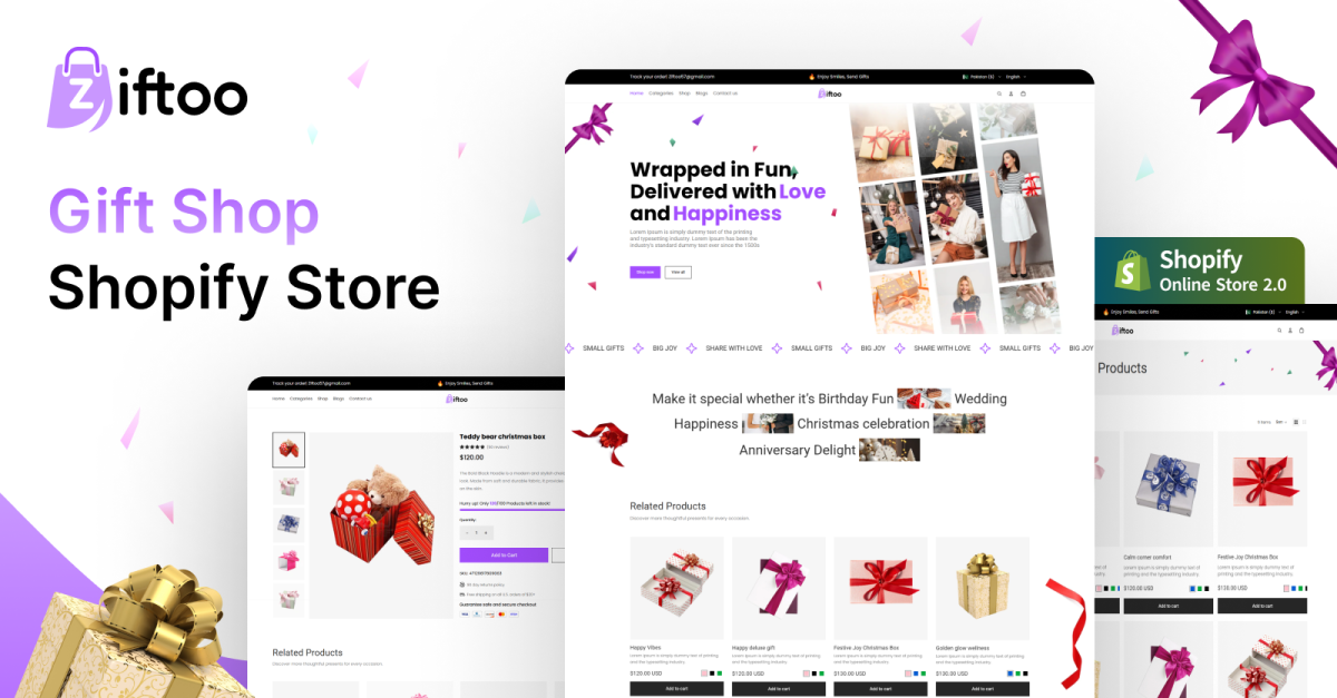 Con Ziftoo – Horizon Gift Store, el tema de Shopify para tiendas de regalos , no solo creas una tienda, sino una experiencia de compra memorable. Sus elegantes elementos visuales, animaciones fluidas y la avanzada estructura Horizon hacen que tu tienda destaque en el competitivo mundo del comercio electrónico. Ya sea para cumpleaños, bodas, aniversarios o cualquier otra ocasión especial, Ziftoo garantiza que tu marca se convierta en la opción predilecta para regalos con significado.