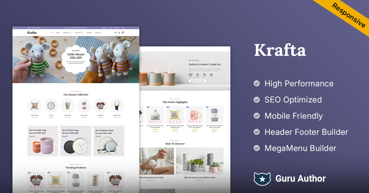 Krafta - Tema adaptable multipropósito de WooCommerce para tienda de artesanías y arte hecho a mano