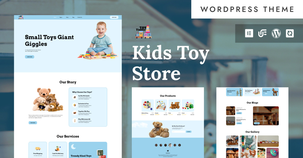 Timber Toy - Tienda de juguetes y cuidado infantil con tema WooCommerce WordPress Elementor adaptable