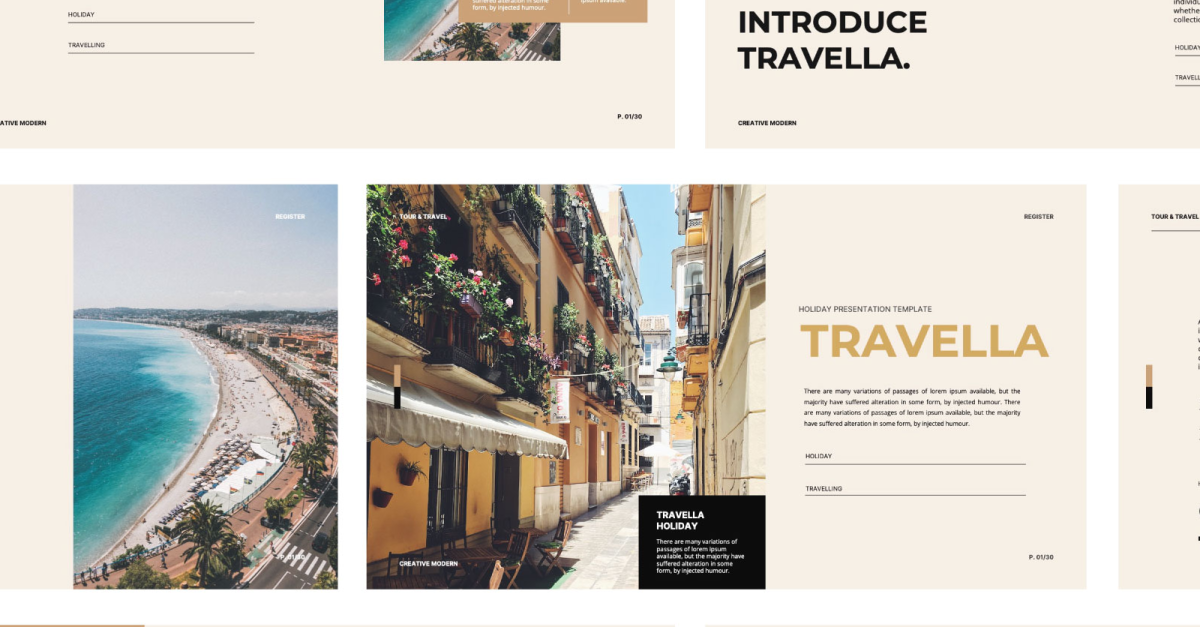 Travella est plus qu'un simple modèle ; c'est un outil puissant pour donner vie à vos récits de voyage. Que vous présentiez une proposition commerciale, partagiez vos dernières aventures de voyage ou créiez un guide de voyage, Travella constitue le canevas idéal pour faire briller votre contenu.