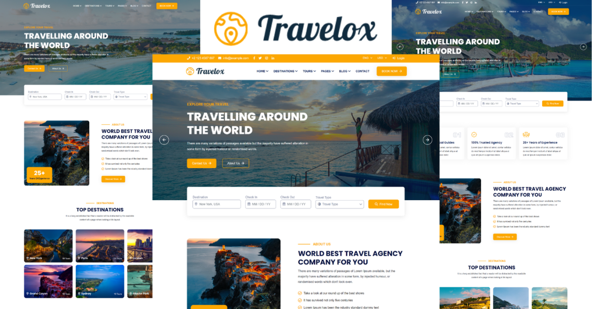 Travelox - Modèle HTML5 pour agence de voyages et réservation de circuits. Travelox est conçu pour les agences de voyages, les voyagistes, les voyages, les vacances et les escapades en ville. Travelox possède des fonctionnalités épurées et un design unique qui rendent votre site Web plus beau. Quel que soit l'appareil que vous utilisez, votre site fonctionnera comme il se doit. Travelox a été créé totalement prêt pour la rétine, ce qui est certainement un plus pour votre entreprise de voyages. Il y a différentes quantités de pages en attente de votre personnalisation. Travelox est un thème étonnant pour le site Web de votre entreprise de voyages.