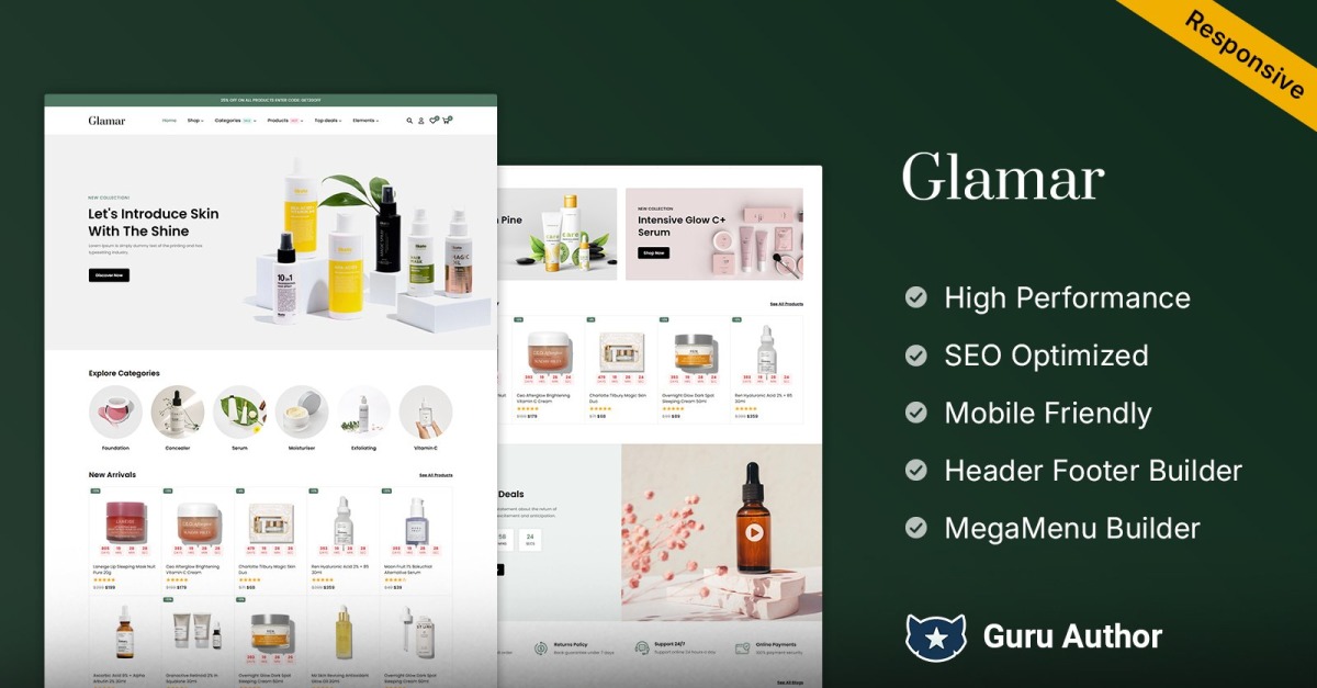 Glamar - Thème WooCommerce Elementor pour cosmétiques, soins de la peau et produits de beauté