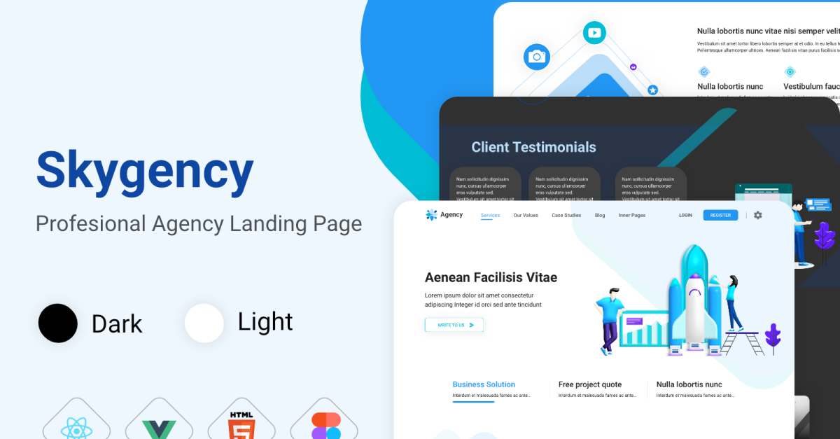 Skygency – React Vue HTML és Figma Agency vállalati céloldal sablon