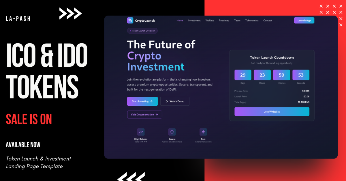Kriptovaluta-indítás – Tokenindítás és ICO/IDO befektetési landing oldal sablon
