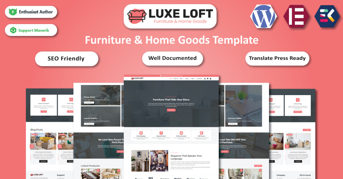 Luxe Loft - Bútor és lakberendezési cikkek WooCommerce Elementor sablon