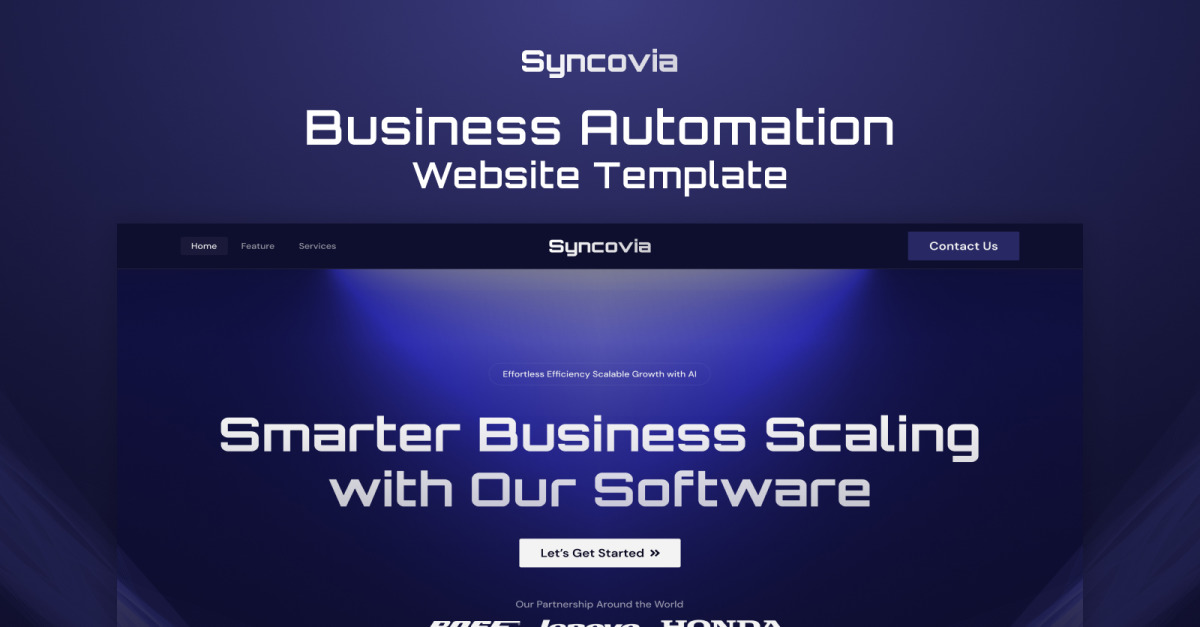 Pronti a semplificare il flusso di lavoro della vostra azienda con un sito web ad alte prestazioni? Il template Syncovia Business Automation Next.js è progettato per aziende SaaS, servizi di automazione aziendale e startup tecnologiche che necessitano di una presenza online elegante, veloce e professionale per presentare le proprie soluzioni e favorire la crescita.