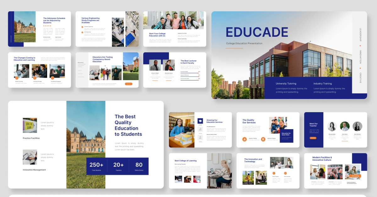 Stimola l'apprendimento e il coinvolgimento con il modello di presentazione PowerPoint "Educade - College Education" . Progettato appositamente per educatori e professionisti del mondo accademico, questo modello combina layout strutturati con elementi visivi educativi chiari per rendere le informazioni accattivanti e facili da seguire.