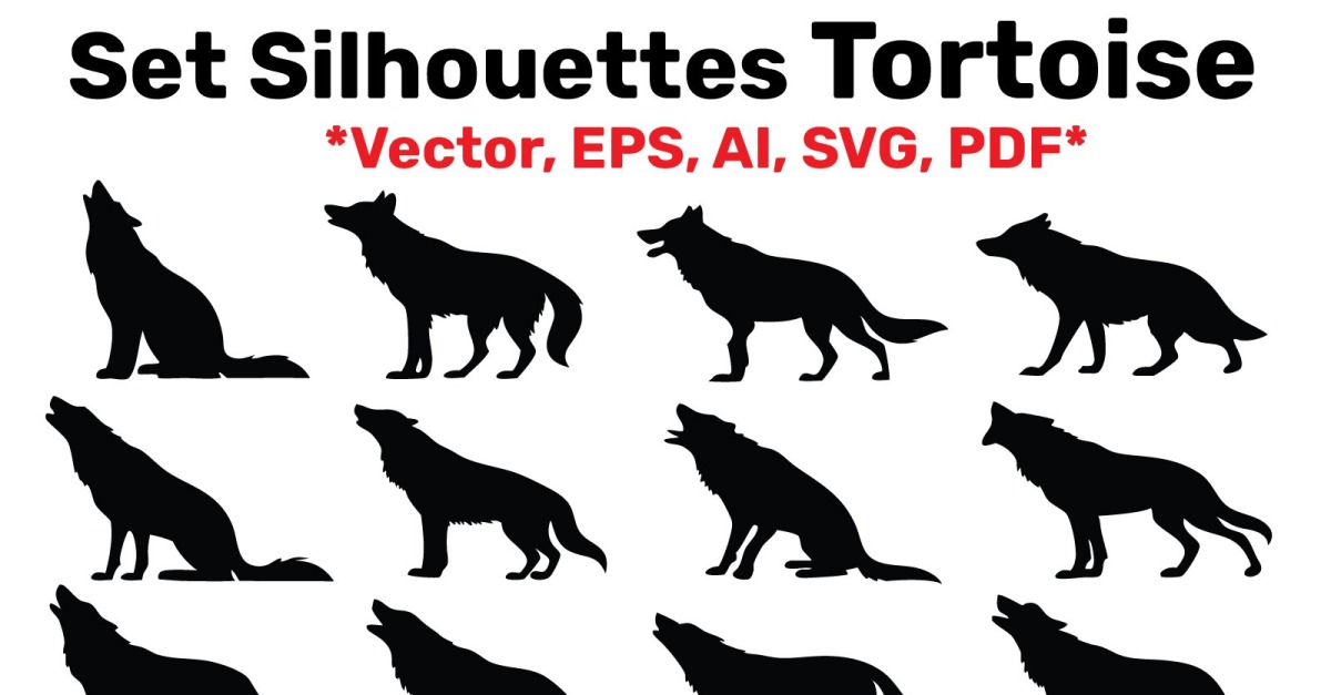 Set Silhouette wolf verschillende poses, Vector, Gemakkelijk te bewerken geïsoleerd op witte achtergrond € 13 Download