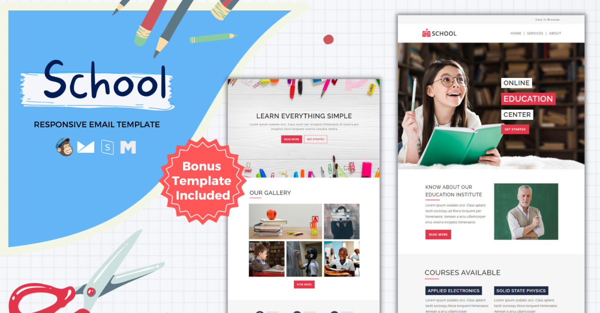 School – Responsieve e-mailsjabloon is een gebruiksvriendelijke sjabloon en heeft een multifunctioneel gedeelte en is geschikt voor school, kleuterschool, kleuterschool, kleuterschool, onderwijs, online onderwijs en algemene doeleinden.
