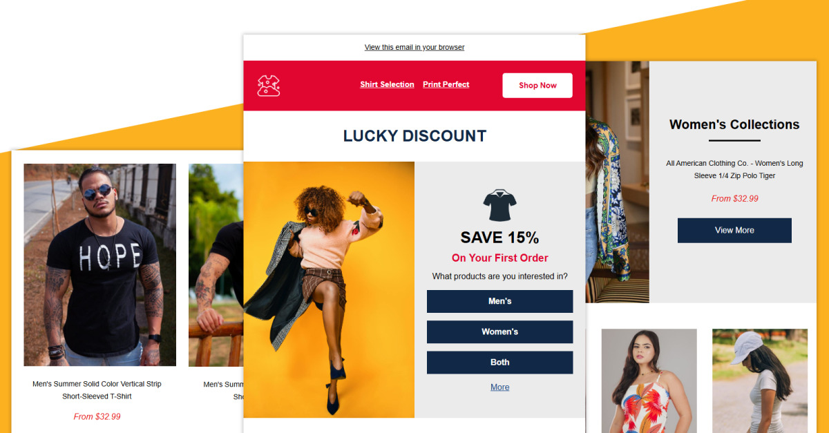 Promoot je bedrijf met gepersonaliseerde T-shirts met een strakke, minimalistische Mailchimp e-mailsjabloon die de focus op je ontwerpen legt. Deze sjabloon is ideaal voor moderne modemerken die een strakke, professionele uitstraling willen. Dankzij de drag-and-dropfunctionaliteit en het mobielvriendelijke ontwerp kun je eenvoudig content bewerken, bestsellers uitlichten of de favorieten van klanten benadrukken. Promoot eenvoudig speciale collecties, seizoensreleases of exclusieve aanbiedingen. De sjabloon zorgt ervoor dat je bericht er in elke inbox goed uitziet en moedigt klanten aan om te klikken, te winkelen en verbonden te blijven met je merk.