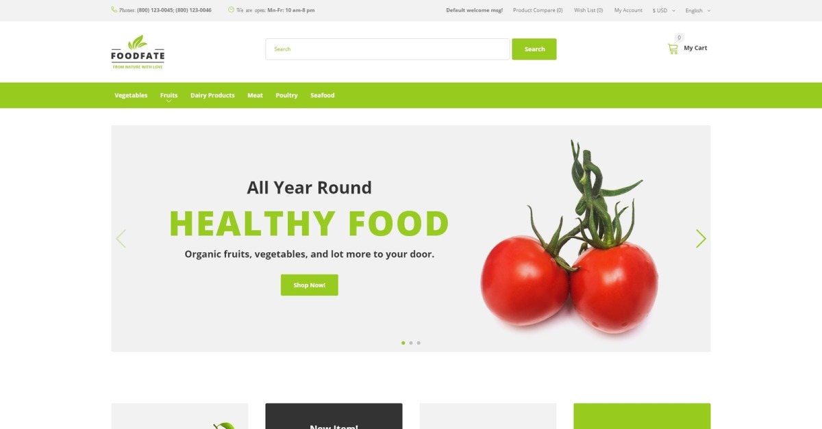 FOODFATE - Efficiënte OpenCart-sjabloon voor online voedselwinkels
