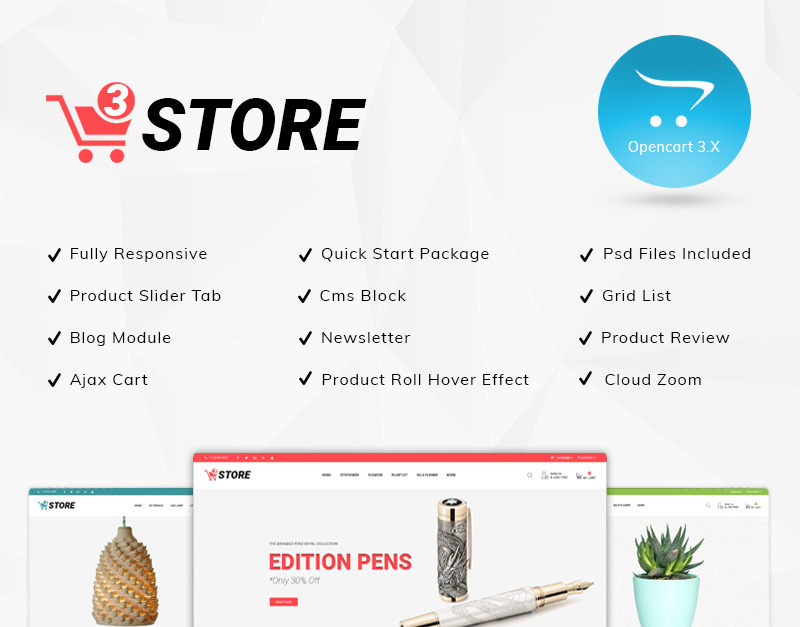 3Store is een responsief eCommerce opencart-thema met het moderne, strakke ontwerp dat speciaal is gemaakt voor online licht, lamp. planten, stationaire winkel of andere soorten eCommerce-winkels met meerdere categorieën. Het thema ondersteunt 3 homepage-ontwerpen en veel handige functies, Mega Menu, Product Quick View, cloudzoom, meertalige en RTL-ondersteuning.