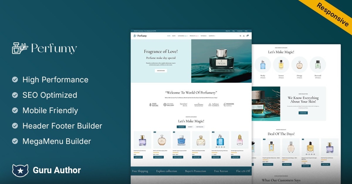 Probeert u het ideale websitesjabloon te vinden om geurartikelen zoals parfum, deodorant en andere eau de cologne aan te bieden? Het biedt u de meest recente componenten en lay-outs van de startpagina, zodat u snel een prachtige online winkel kunt maken. Ons meest geavanceerde thema, dat vrijwel alle vereiste functies biedt, is de parfumwinkel. Als je door Perfumy bladert op een desktopcomputer, tablet of mobiele telefoon, zal het thema zich precies aanpassen aan de schermgrootte, aangezien elk aspect van Perfumy volledig responsief is.