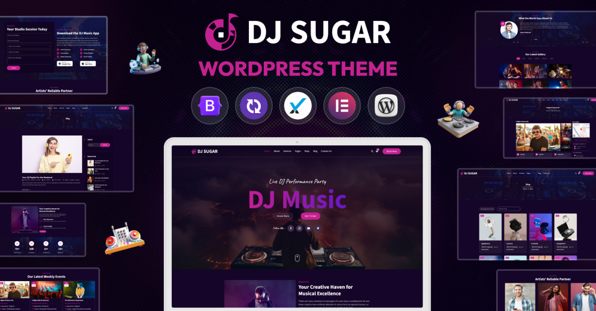 Het DJ Sugar WordPress-thema is een krachtige en visueel aantrekkelijke oplossing voor dj's, muzikanten, muziekproducenten en evenementenorganisatoren die een opvallende online aanwezigheid willen creëren zonder ingewikkelde code te hoeven schrijven. Dit thema is ontworpen met de moderne muziekprofessional in gedachten en combineert stijl met functionaliteit, met een strakke, responsieve lay-out die er op elk apparaat fantastisch uitziet. Of je nu je nieuwste nummers wilt laten zien, aankomende optredens wilt promoten of multimediacontent wilt delen, met DJ Sugar creëer je eenvoudig een aantrekkelijke digitale hub die je merk en sound weerspiegelt. Van energieke club-dj's tot onafhankelijke producers en festivalorganisatoren, dit thema zit boordevol tools om je te helpen contact te leggen met je publiek en je online aanwezigheid te vergroten.