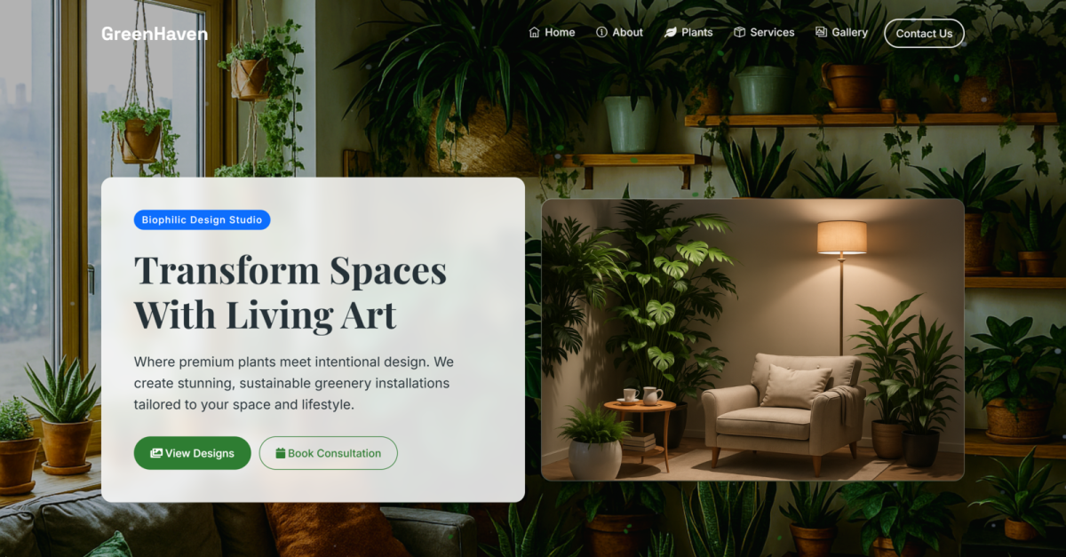 Green Haven to wyrafinowany, inspirowany naturą szablon strony internetowej, przeznaczony dla firm specjalizujących się w projektowaniu biofilnym, stylizacji roślin do wnętrz i zrównoważonych instalacjach zieleni. Idealny dla projektantów roślin, stylistów miejskich dżungli, konsultantów ogrodniczych i butikowych sklepów z roślinami, ten szablon łączy elegancką estetykę z zaawansowaną funkcjonalnością, aby zaprezentować Twoje doświadczenie botaniczne.