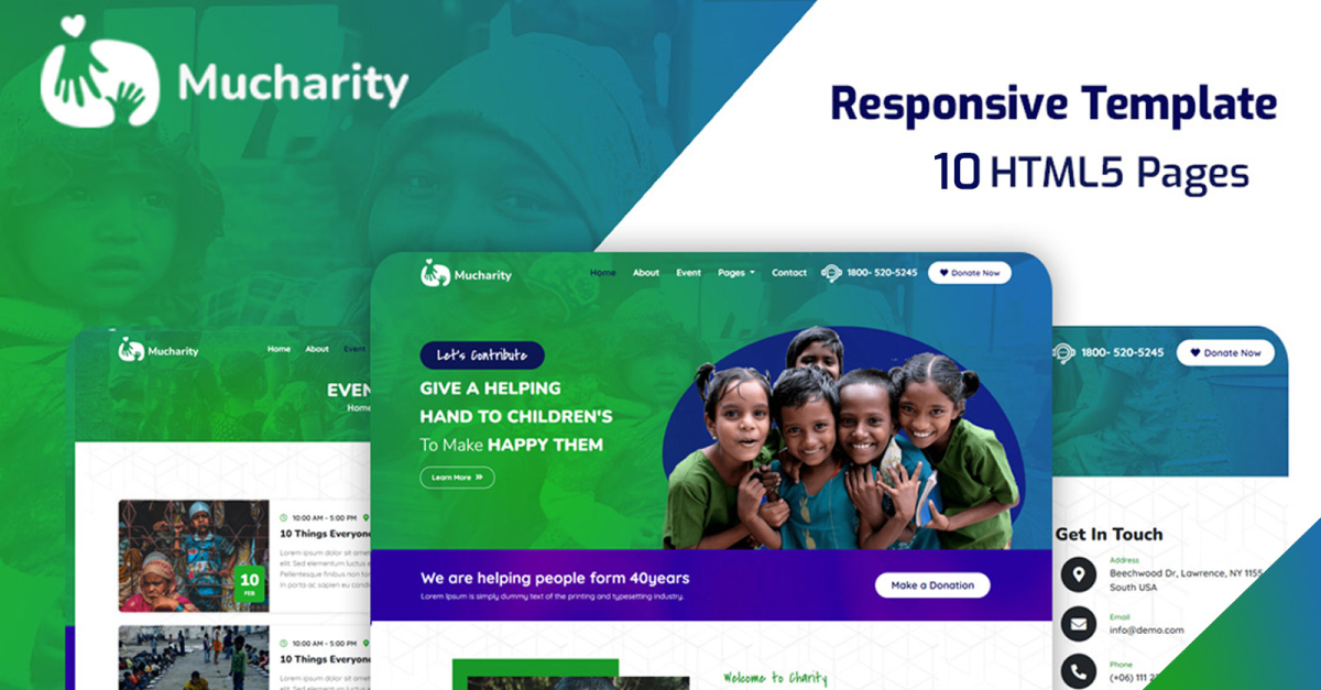 Mucharity to szablon HTML5 zbudowany na Bootstrap 5.x dla organizacji non-profit, organizacji pozarządowych lub witryny crowdfundingowej. W pełni responsywny i może być używany do wszelkiego rodzaju aplikacji internetowych związanych z finansowaniem społecznościowym, organizacjami charytatywnymi, organizacjami pozarządowymi lub usługami społecznościowymi. Szablon idealnie pasuje do różnych ekranów, takich jak komputer stacjonarny, laptop, tablet, iPad, iPhone i inne urządzenia mobilne.