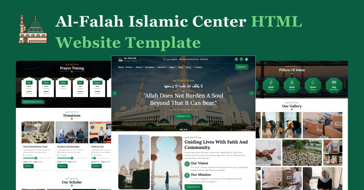 Al-Falah to nowoczesny i przyjazny szablon witryny internetowej Centrum Islamskiego w formacie HTML5, starannie zbudowany przy użyciu zaawansowanych technologii, takich jak HTML5, CSS3 i JavaScript, aby zapewnić elastyczną platformę dla usług religijnych i społecznościowych. Zaprojektowany specjalnie dla centrów islamskich i meczetów, z rozmysłem odpowiada na duchowe i kulturowe potrzeby społeczności muzułmańskiej. Skupiając się na inkluzywności i połączeniu, Al-Falah wykracza poza konwencjonalne szablony, oferując unikalny zakres funkcji, aby podnieść obecność online centrów islamskich i organizacji religijnych.