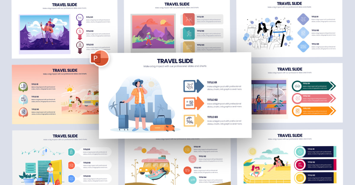 Travel Vector Infographic Szablon prezentacji PowerPoint Płaski, czysty, minimalistyczny, elegancki i elastyczny szablon prezentacji.
