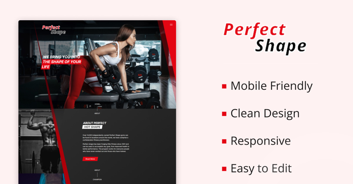 Perfect shape é a solução completa para academias de ginástica, academias e personal trainers que desejam expandir seus negócios online. Perfect Shape ajuda você a criar um site eficaz e rápido para fitness. Ele também se concentra nas experiências do usuário com o design e vários recursos predefinidos que economizam muito tempo e energia. O Perfect Shape foi criado para especialistas em fitness, treinadores e empresas de serviços de academia relacionados a qualquer página de destino de site de fitness. É muito fácil de integrar e você pode facilmente modificar sua aparência. Perfect Shape é um modelo HTML documentado e bem apresentado. Perfect Shape é compatível com todos os principais navegadores como Google Chrome, Microsoft Edge, Firefox, Safari, Internet Explorer 9+, etc.