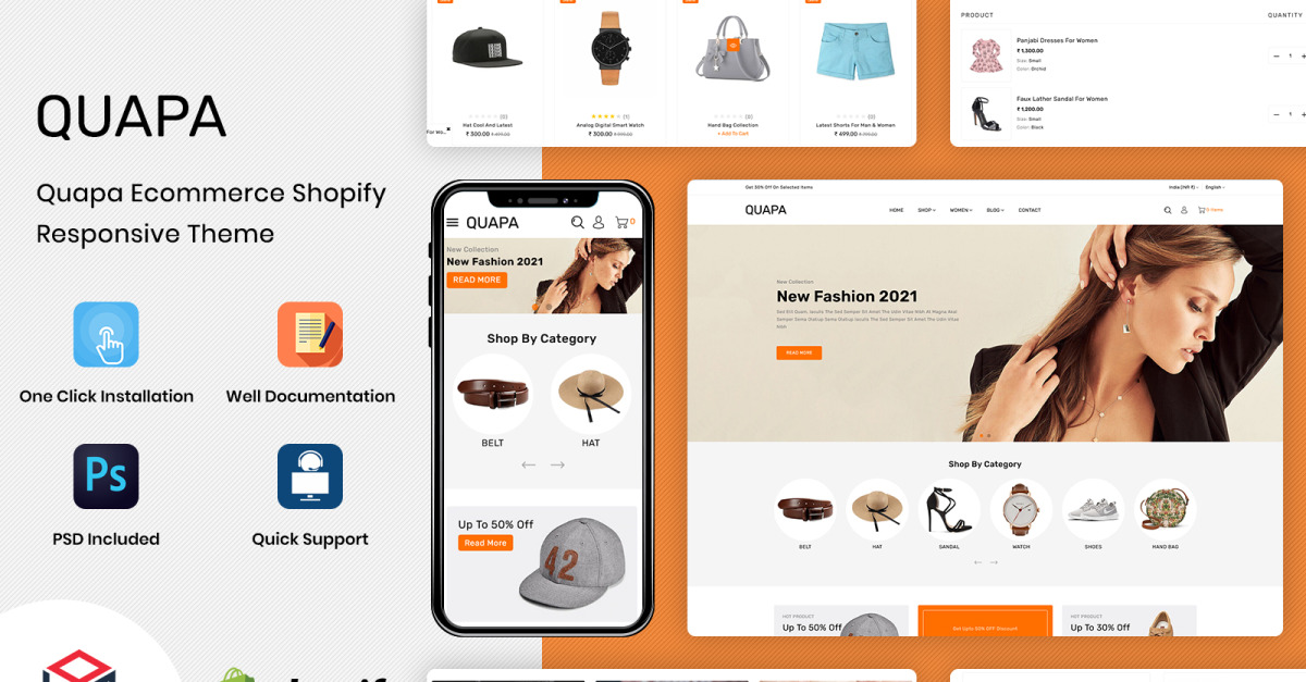 O principal benefício do tema Quapa são os produtos da guia, produtos de categoria, opção de layout completo, produtos relacionados com pesquisa responsiva, ajax ao vivo, cada comprador pode encontrar facilmente produtos de acordo com a categoria, lista de desejos, informações de contato, carrinho ajax, opções sociais, blogs para os mais recentes notícias, comparação, configuração de cores do tema ao vivo, várias moedas, produtos pop-up, assinatura de boletim informativo, depoimento, lista de categorias e opções de grade, conteúdo cms, revisão do produto, layout de caixa, vários banners, links úteis, etc.