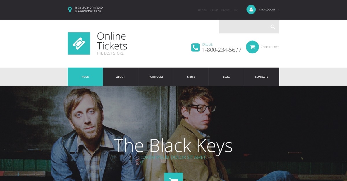 Este é o tema de design WooCommerce de ingressos on-line com portfólio