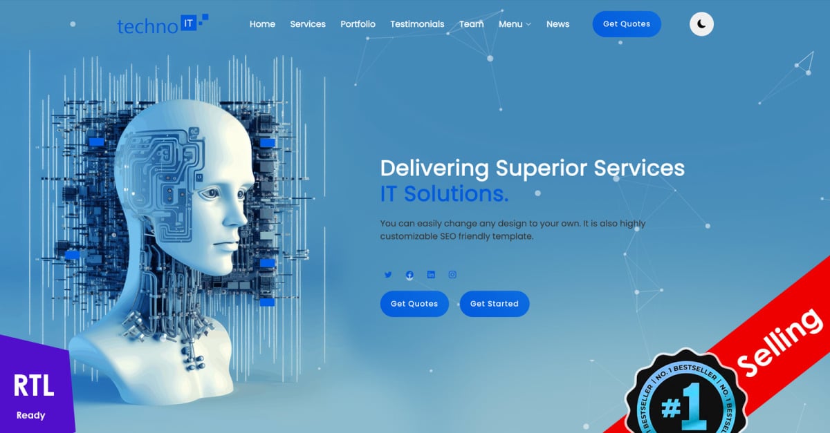 Technoit - Modelo de site responsivo multifuncional para soluções de TI e serviços empresariais + RTL