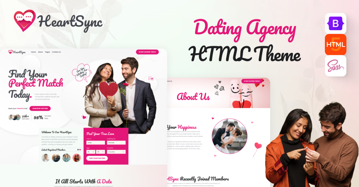 O HeartSync - Dating Website HTML Template é um modelo HTML avançado e totalmente personalizável, projetado para criar sites de namoro dinâmicos e fáceis de usar. Ideal para startups de namoro ou plataformas estabelecidas, ele combina design limpo com funcionalidade intuitiva para ajudar os usuários a encontrar conexões facilmente. O modelo vem com um layout moderno e responsivo que garante uma experiência de usuário ideal em todos os dispositivos, de desktops a smartphones. Seja para um site de namoro de nicho ou um serviço de matchmaking em larga escala, o HeartSync oferece uma base sólida para o desenvolvimento de uma plataforma de namoro online envolvente e interativa. Com foco no engajamento do usuário, privacidade e segurança, o HeartSync fornece todos os recursos essenciais para criar um ambiente de namoro seguro e atraente.