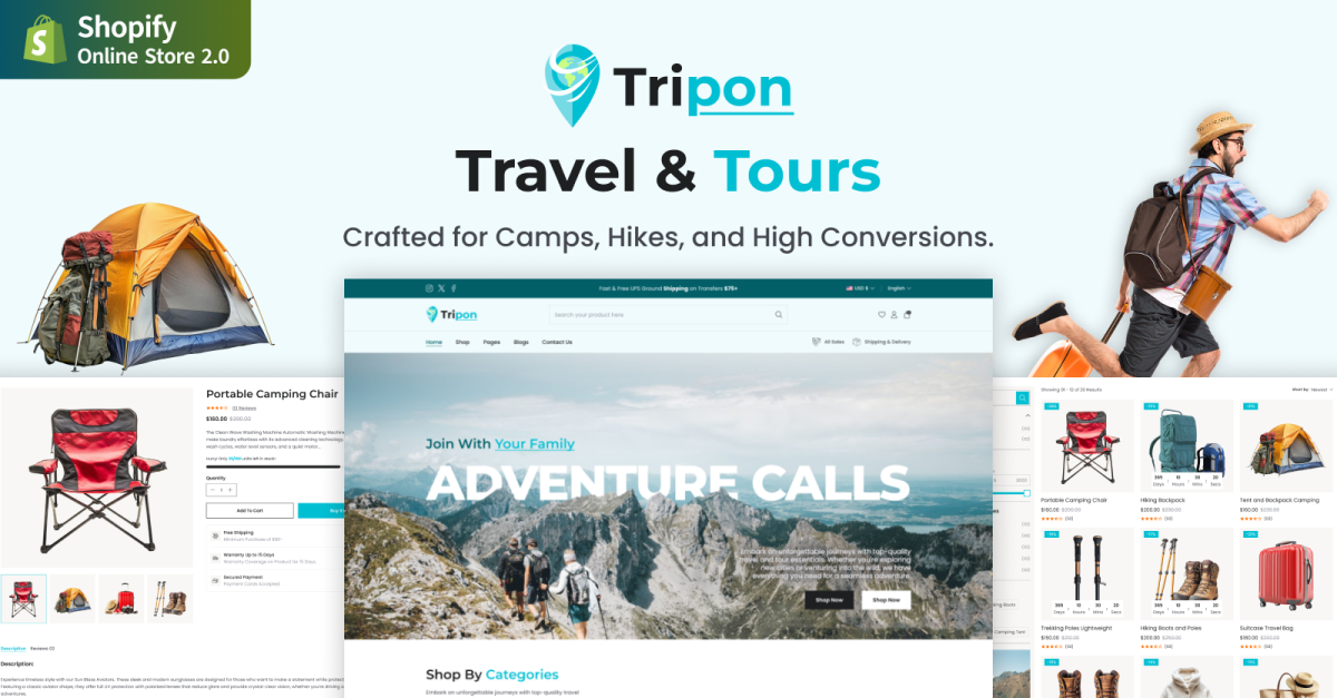 Tripon - Магазин товаров для пешего туризма, кемпинга и треккинга Shopify Theme