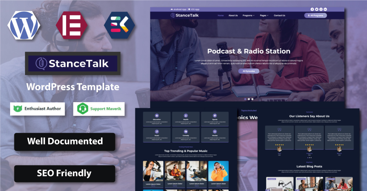 Stance Talk — шаблон WordPress Elementor для подкастов и радиостанций