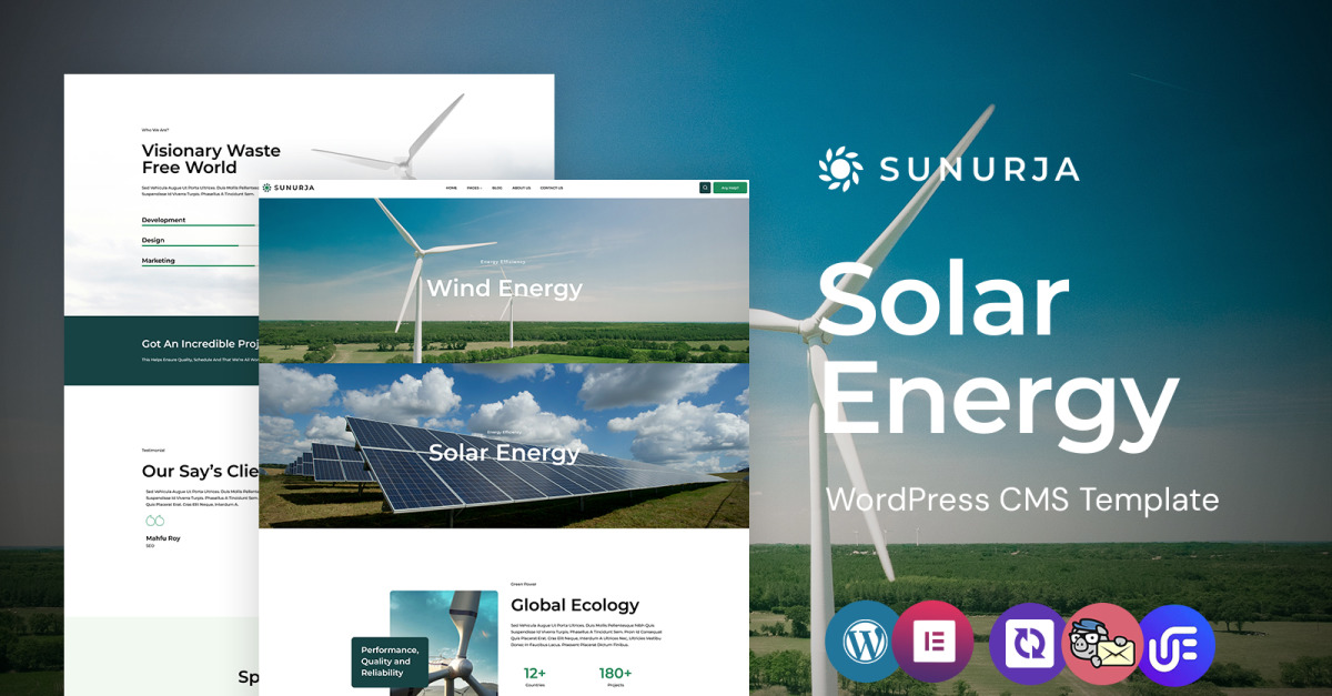 Sunurja — тема WordPress Elementor «Солнечные панели и возобновляемые источники энергии»