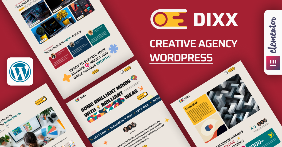 Если вы ищете тему WordPress для креативного агентства , которая не только выглядит профессионально, но и обеспечивает гибкость и масштабируемость для расширения вашего цифрового присутствия, Dixx — идеальный выбор. Благодаря совместимости с Elementor, расширенной настройке и плавному реагированию вы можете создать мощное онлайн-присутствие за считанные минуты. Ее динамические функции созданы для цифровых инноваций, что упрощает вам демонстрацию ваших услуг, команды и портфолио таким образом, чтобы это нашло отклик у ваших клиентов.
