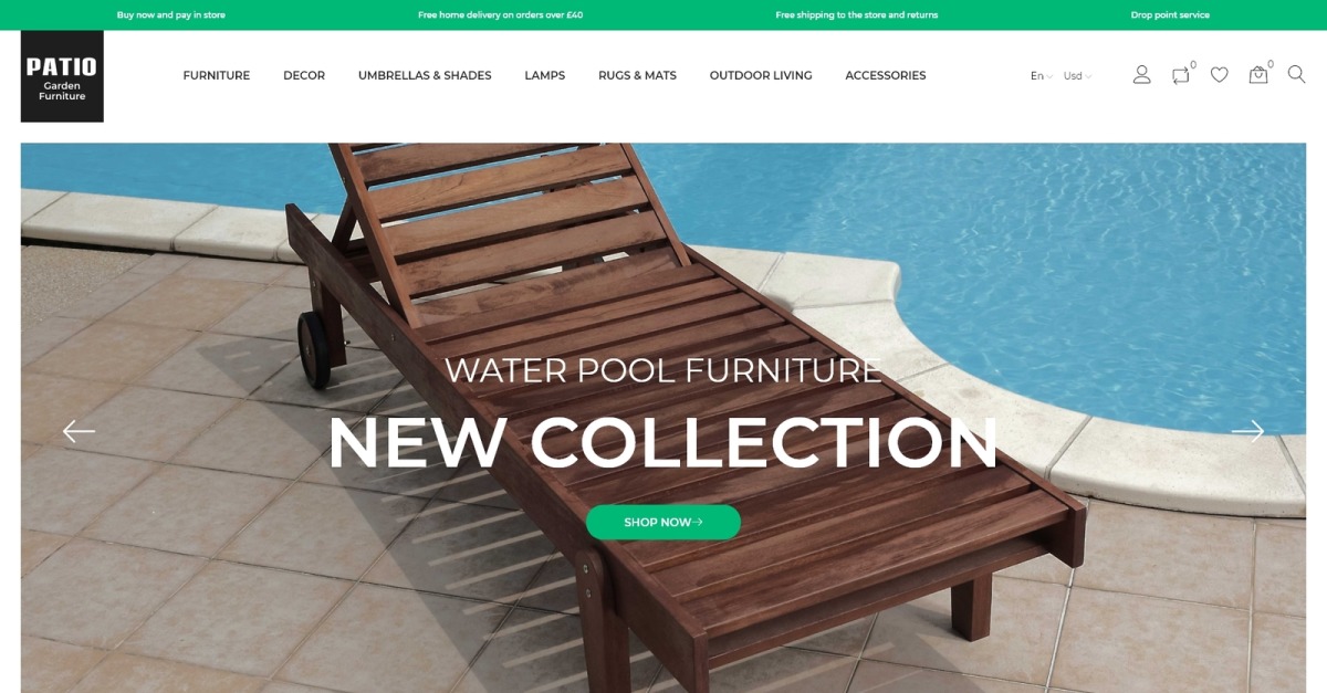 Uteplats-trädgårdsmöbelbutik E-handel Bootstrap Clean PrestaShop-tema