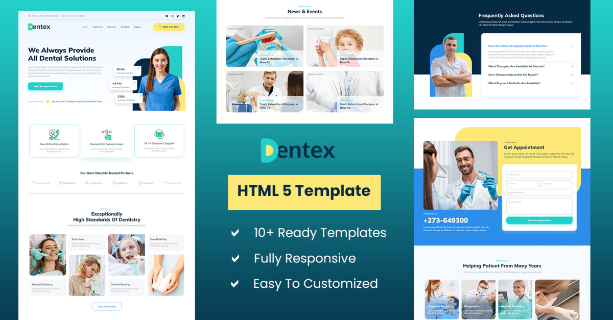 DENTEX - Tandläkare & Tandvård HTML5 webbplatsmall