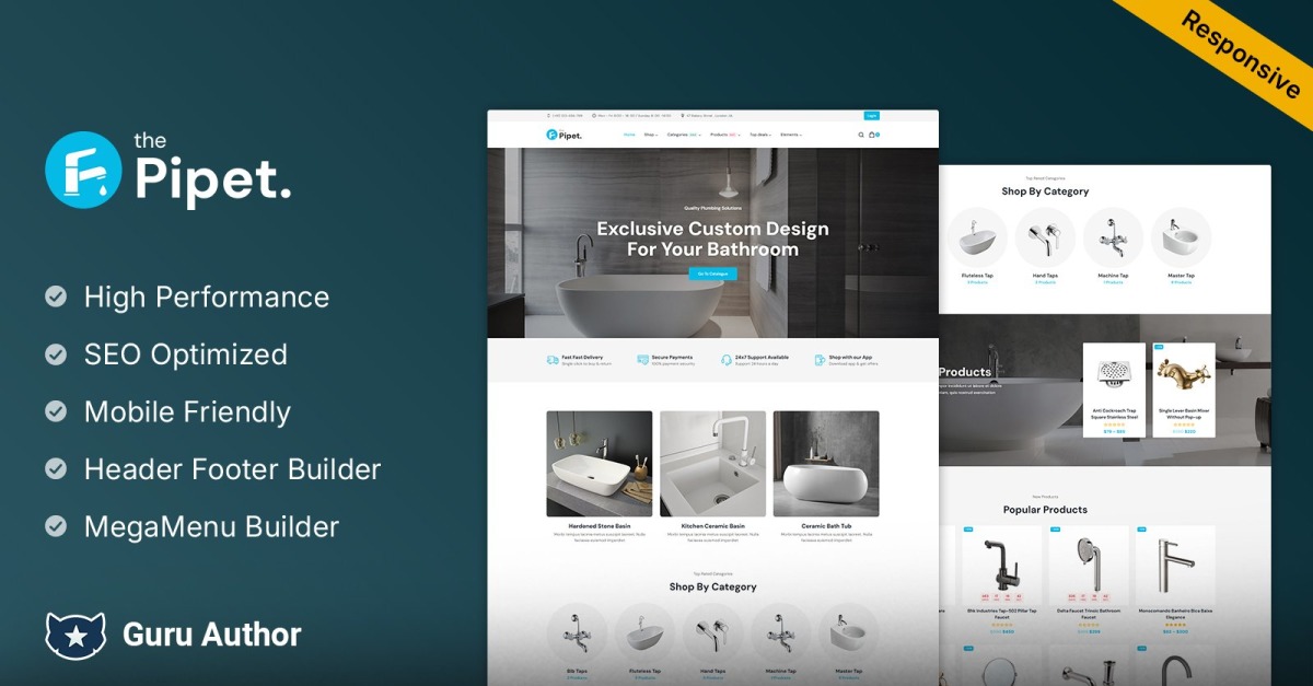 Pipet - Badrum och sanitär WordPress WooCommerce-tema
