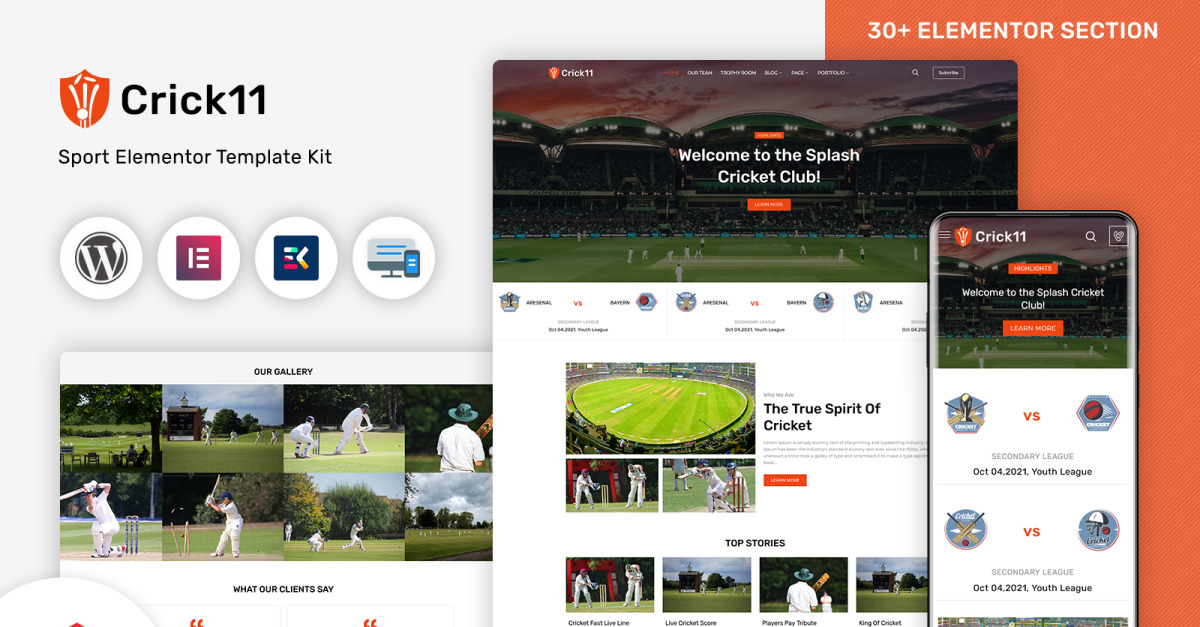 Crick11 - Idrottsklubbar och evenemang WordPress Elementor -tema