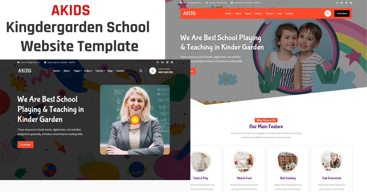 Akids, çocuklar ve çocuklar için Diğer En İyi'yi satmak için optimize edilmiş Benzersiz bir Web Sitesi şablonudur . Renkli tasarımı, Tüm Bölümler için tasarlanmış Çocuk Bölümü ile iyi uyum sağlar. Öğretmen bölümü, Hakkımızda, Özellik, Sınıf, Çocuk Aktiviteleri, Program, Galeri, Bizimle İletişime Geçin, Müşteri, Sayaç, Etkinlik vb. gibi web sitesi geliştirme için ihtiyacınız olan her şeyi içerir.