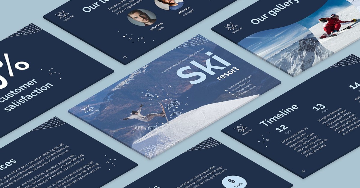 Kayak Merkezi Sunumu PowerPoint şablonu