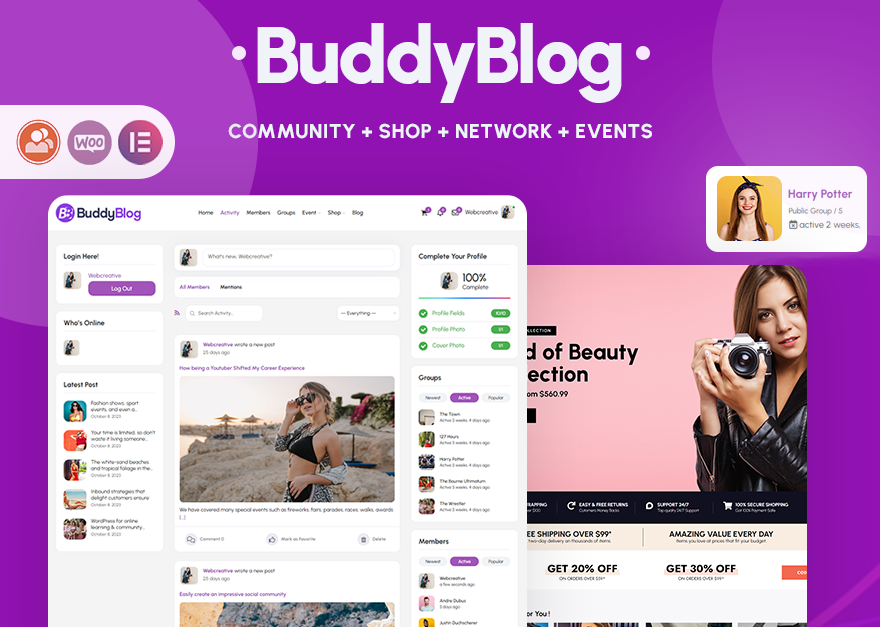 BuddyBlog - Topluluk Oluşturma, E-Ticaret, BuddyPress Teması